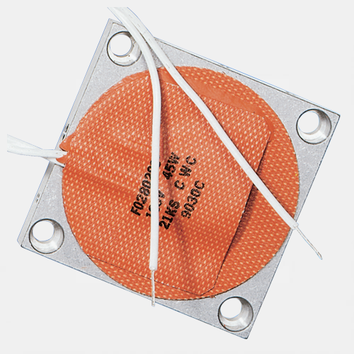 Watlow silicone rubber heaters are rugged, yet thin, lightweight and flexible. Use of these heaters is limited only by the imagination. Heat can be put where it is needed. These silicone heaters improve heat transfer, speed warm ups, and decrease wattage requirements. Fiberglass-reinforced silicone rubber gives the heater dimensional stability without sacrificing flexibility. Because very little material separates the element from the part, heat transfer is rapid and efficient. The silicone rubber heaters are constructed with a wire-wound element or an etched foil element. The heater construction creates a very thin heater allowing it to fit applications where space is limited.
